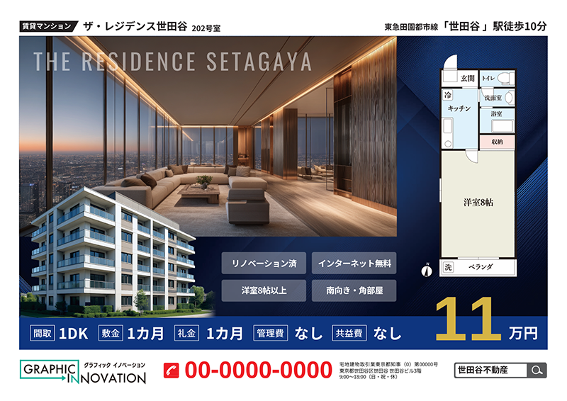 デザイン性と使いやすさを両立し、文字と写真を差し替えるだけで、見やすく整ったマイソクを作成できます。レイアウトや情報配置をあらかじめ設計しているため、誰でも簡単にプロ品質の資料を作成可能です。